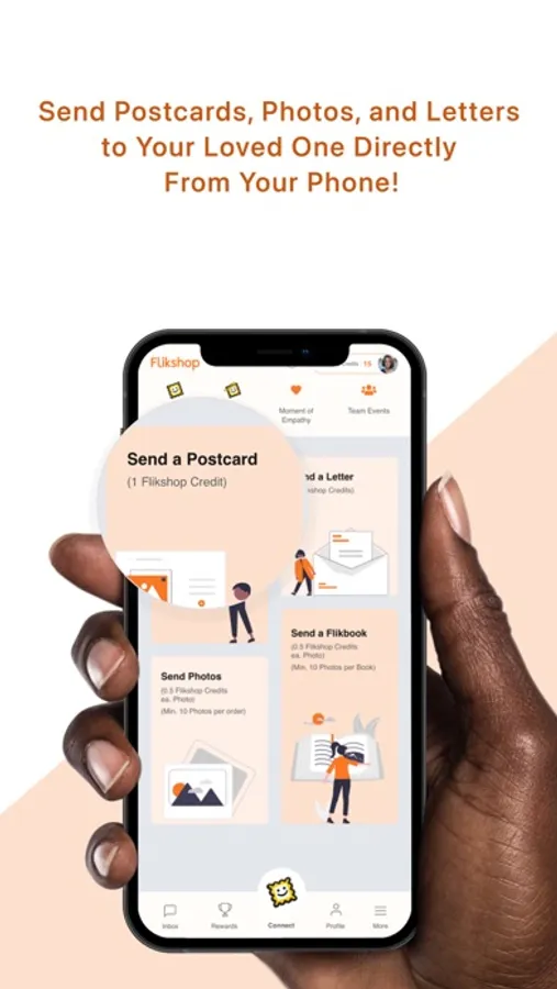 Add your photo, type a message, and click "Send Postcard". Flikshop prints your photos and messages on real postcards and ships them directly to your incarcerated loved one in the mail. Each postcard is shipped within 48 hours on REAL full-color high quality paper...and we pay for postage!