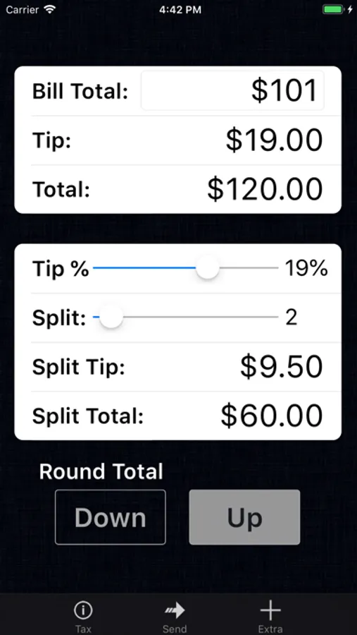 Tip Calculator % features fast bill entry and splitting, ideal for those dining out or having drinks with friends.