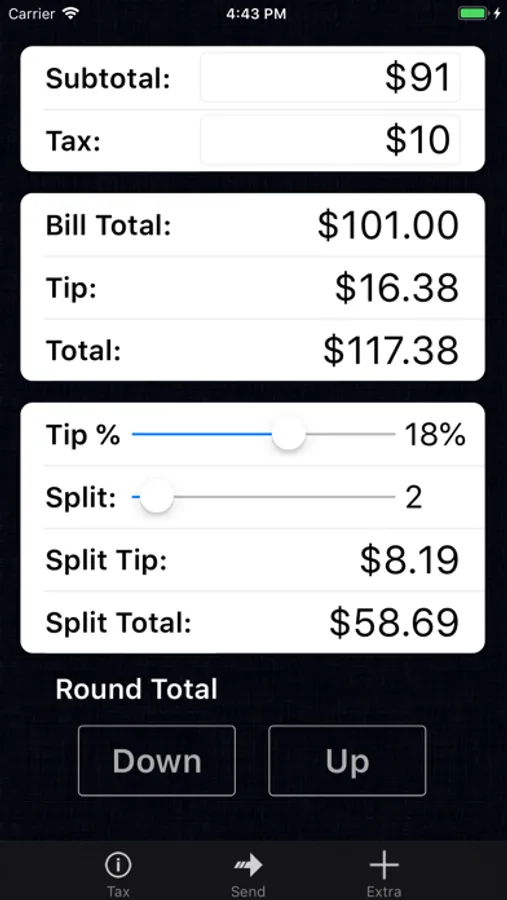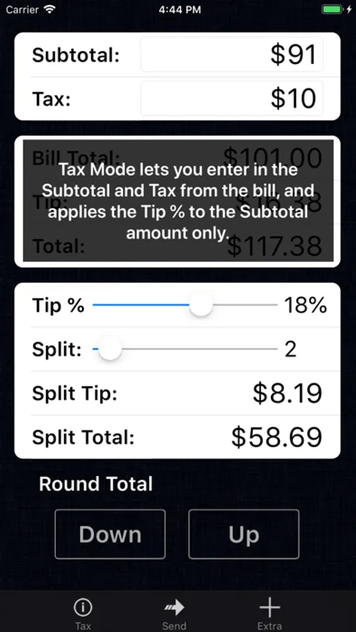 • Save more $$$ with Tax mode, to apply Tip % to pre-tax Subtotal