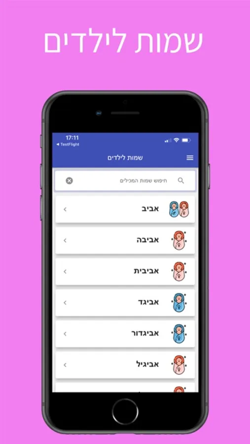* בחירת שם לתינוק מתוך מאגר של כ 2000 שמות לבנים ולבנות.