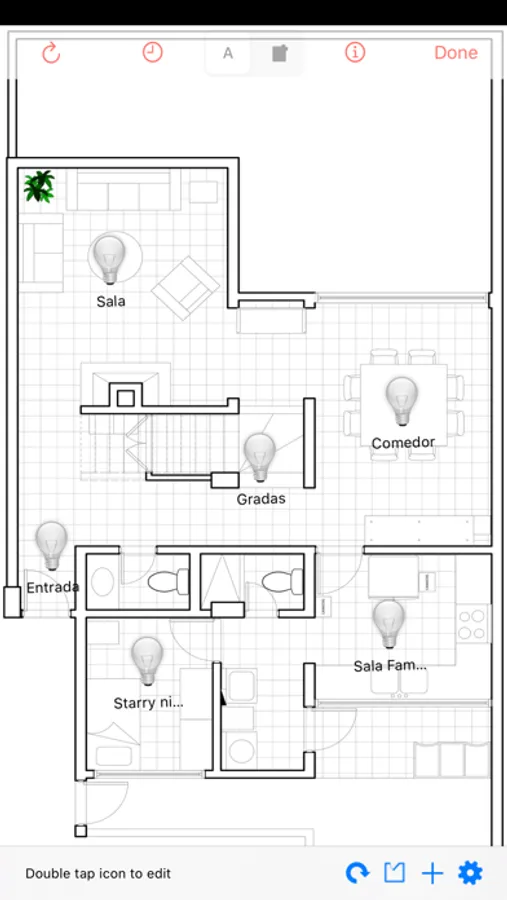 Easily and quickly add your lighting scenes, check current light status, drag the icons around the screen inside your floorplan, and turn them on/off with one click.