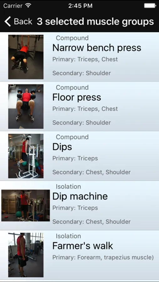Detailed step-by-step instructions guide you through the various exercises of your selected muscle group.