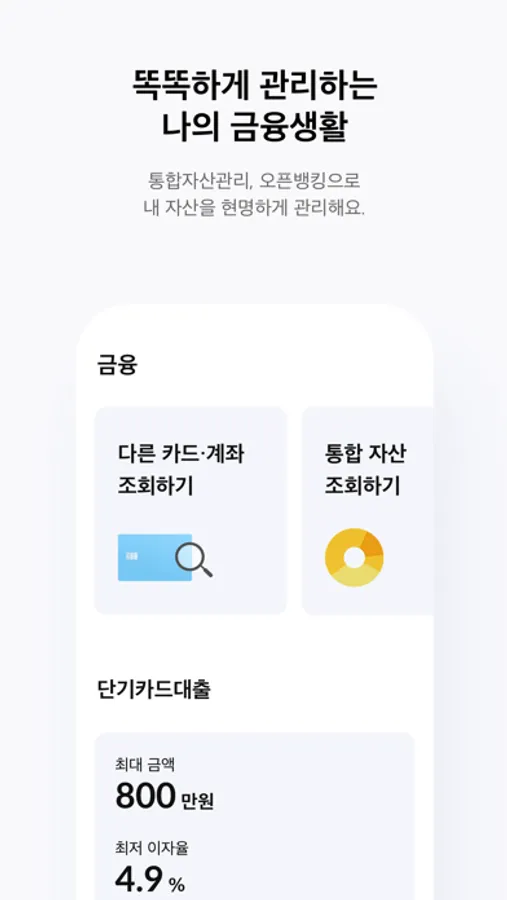 - 통합자산관리, 오픈뱅킹 등 자산 조회 서비스 제공
