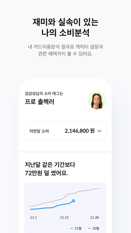 - 나의 소비 패턴에 따라 신나게 모으는 ‘캐릭터 소비 태그’