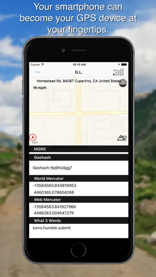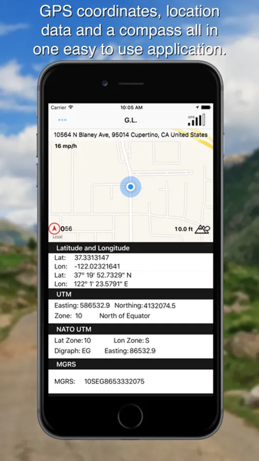 Determining coordinates of various formats on your iOS device also Altitude, Speed, compass data. Gives you the address the bearing the azimuth and have a flash light for any occasion.