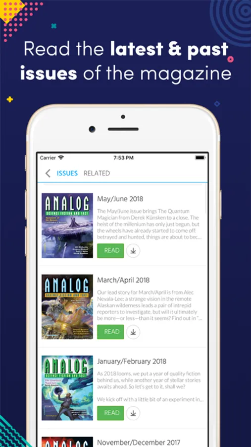 Published since 1930, Analog Science Fiction and Fact is one of the most enduring and popular magazines of science fiction. Its editorial emphasis is on realistic stories that reflect high standards of scientific accuracy, imagination, and lively articles about current research on the frontiers of real science. A recurrent theme in both fiction and provocative opinion columns is the human impact of science and technology. ANALOG has won numerous Nebula, Hugo, and other awards acknowledging it as a leading periodical in the field.