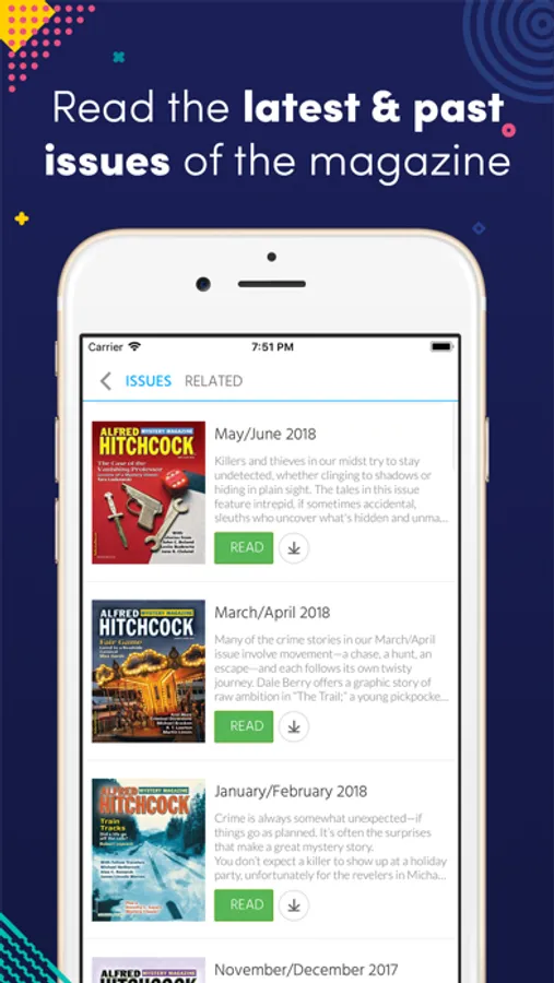 For over fifty years, Alfred Hitchcock’s Mystery Magazine has been one of the foremost publishers of mystery, crime, and suspense short stories. AHMM each month publishes mystery fiction of the broadest range and the highest quality, featuring every subgenre of mystery fiction. "The lack of a specific house style," says Kirkus Reviews, "is its greatest strength." Stories featured in AHMM have won dozens of awards, including many Robert L. Fish awards for Best First Mystery Short Story of the year.