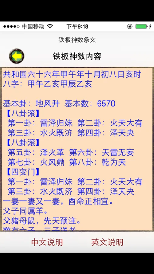 本程序是依铁板神数原理编辑而成,大大加快查询速度,可谓“一触即得,瞬间即览”。