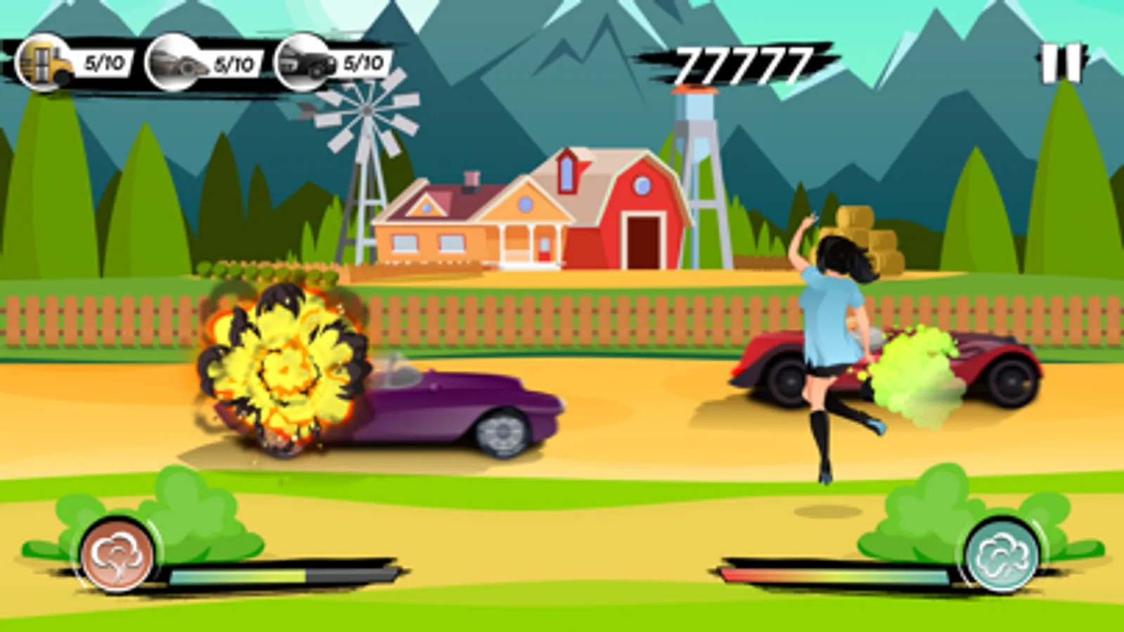 Click “Fart” button as soon as the car appears at the street and keep pushing the button, while the car is on the screen.