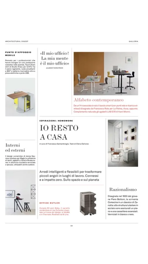 AD nasce nel 1981 dall’esperienza di Architectural Digest, la rivista americana di interior design e di architettura, leader nei paesi di lingua inglese.È la rivista delle case più belle del mondo: la raffinatezza, il lusso e i nuovi trend dell’abitare sono rappresentati come espressione del life style e dello spirito del tempo. Con una formula editoriale di alto profilo e senza pregiudiziali estetiche, ogni mese AD propone ad un lettore attento ed esigente una panoramica dettagliata delle tendenze e delle innovazioni più originali nel campo dell’arredamento, del design, dell’architettura e dell’arte.