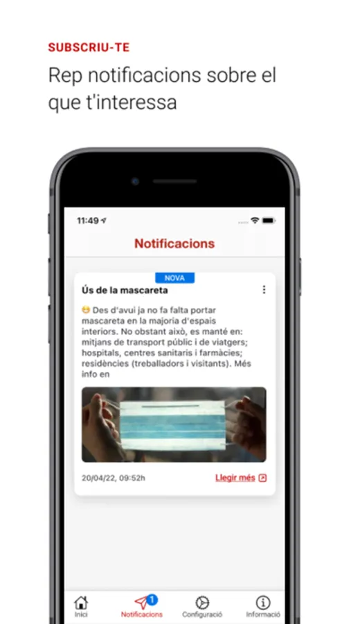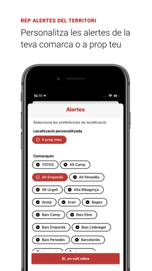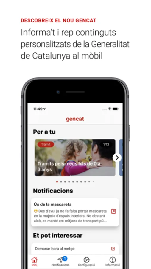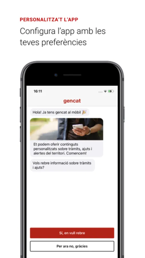 L'app gencat ofereix continguts i avisos personalitzats sobre tràmits i ajuts en funció de les preferències que se seleccionin. També permet subscriure's, per geolocalització o per comarques d'interès, a les alertes rellevants del territori relacionades amb la salut, risc d'inundacions, episodis de contaminació…