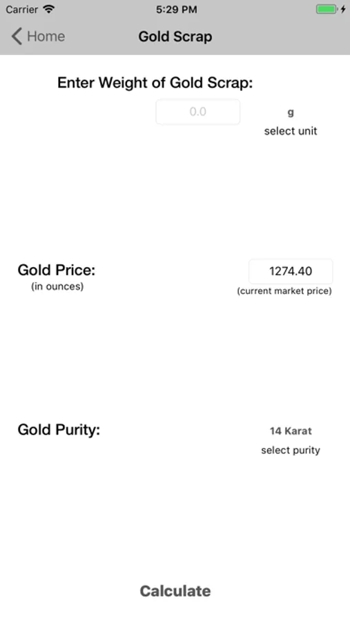 - Gold Scrap calculator modeled after the most popular gold calculator on the web, GoldCalc.com. Units include grams, milligrams, pennyweight, grains, and troy ounces.