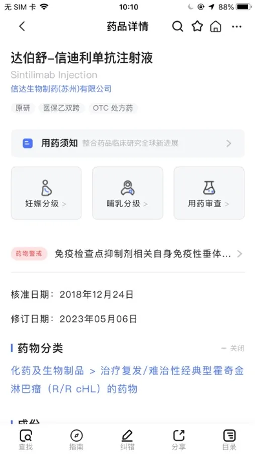 4、妊娠和哺乳用药等级和说明查询功能。(包括FDA 妊娠分级和欧盟哺乳用药分级信息。)