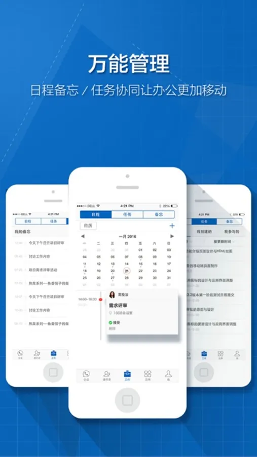 5.日程:预约事件、电话会议如此简单,且支持iOS自带日程数据同步;日程可以共享给其他同事,领导亦可查看下属的日程。