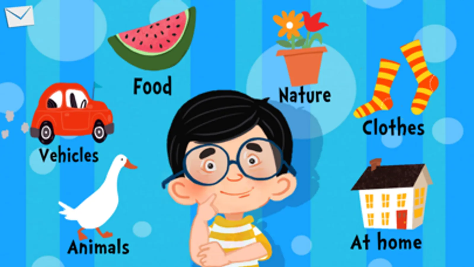 - 6 categories: animals, vehicles, food, nature, clothing and at home.