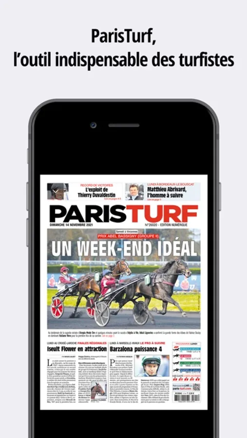 . Prenez une longueur d’avance : chaque numéro de Paris-Turf est disponible la veille de sa parution en kiosque dès 21h00, heure de Paris.