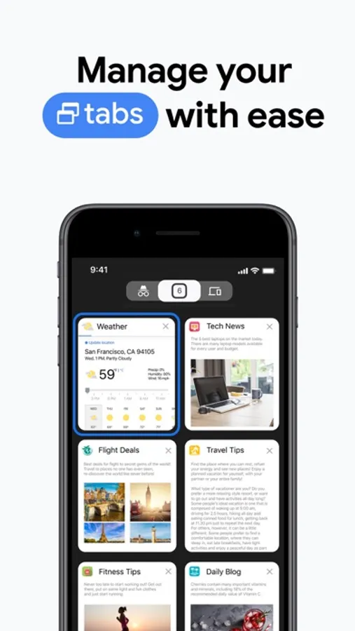 • MANAGE TABS EASILY - See all your tabs in a single view and easily organize them into groups.