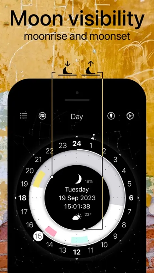 • Lunar cycle: moonrise and moonset, moon phases, and more