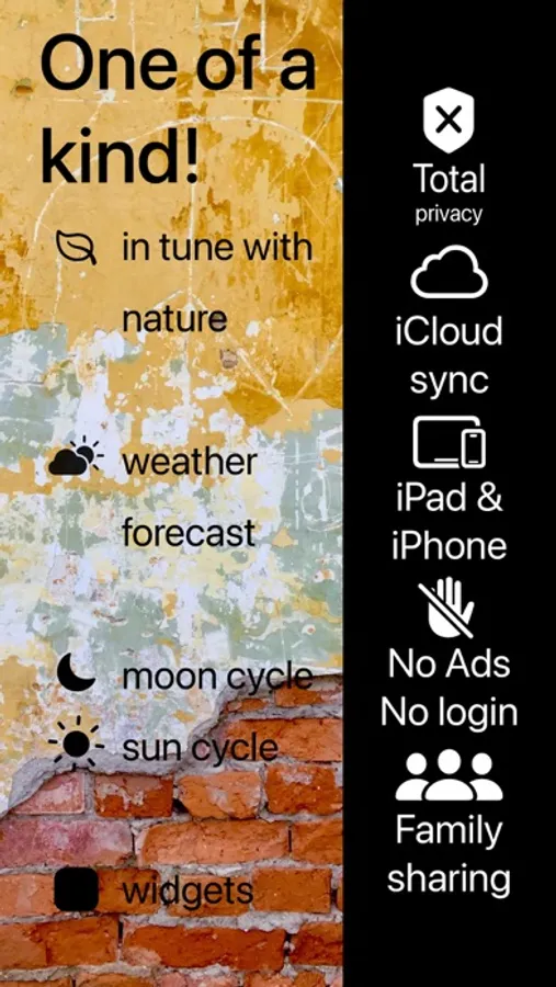 • Event alerts and notifications about natural phenomena - lunar phases and seasonal changes
