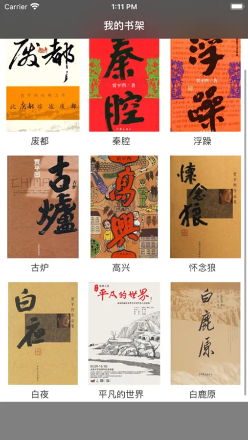 此App包含:废都、高兴、古炉、秦腔、怀念狼、白夜、浮躁、平凡的世界、白鹿原等小说