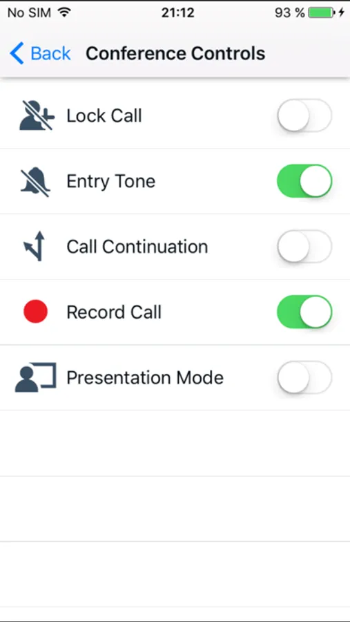 - Full conference controls – view roster, mute/unmute participants, lock/unlock etc