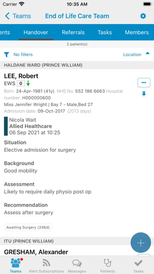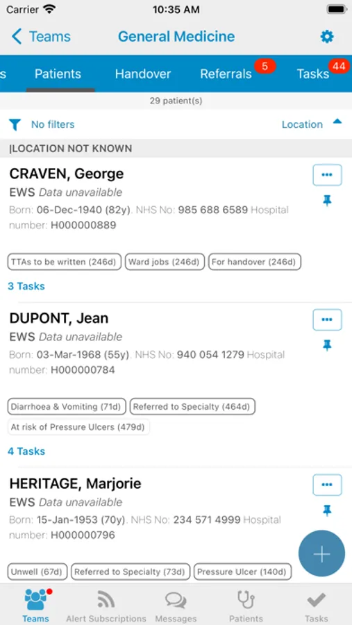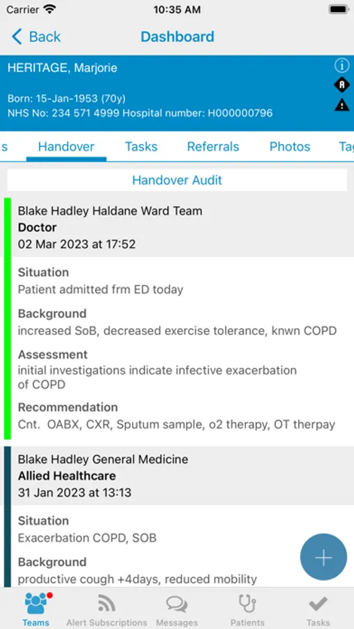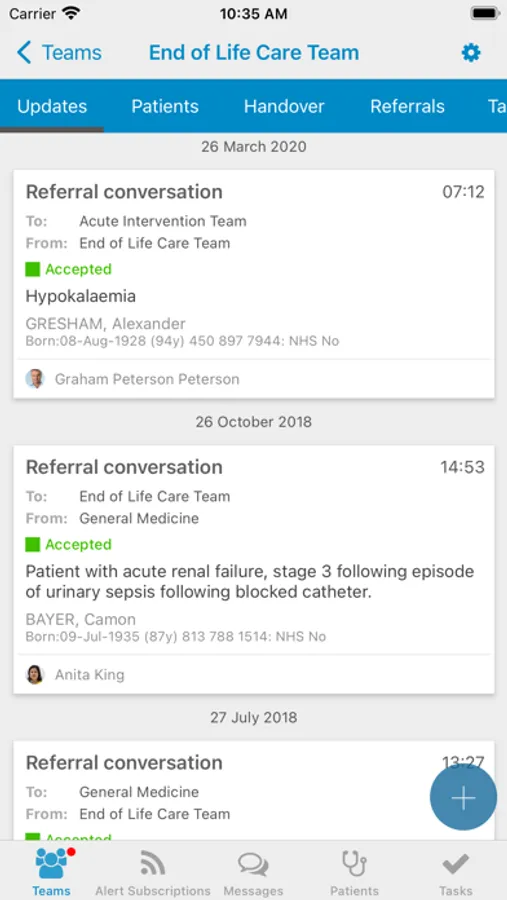 It provides secure messaging, task management, patient list management, patient handovers, opinion and patient referral workflow and escalation of patient events through team based and individual push notifications.