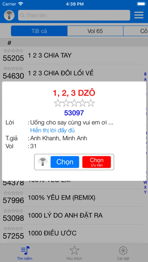 Ứng dụng tìm kiếm bài hát karaoke, và cho phép chọn trực tiếp bài hát trên điện thoại