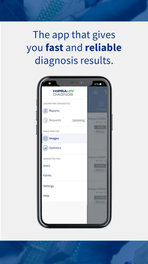 HIPRAlink Diagnos is an essential support tool for field veterinarians who wish to have a quick and reliable diagnosis through the most modern laboratory techniques and artificial intelligence. Anytime, anywhere.