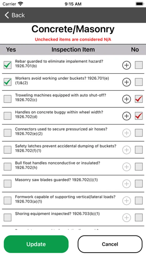 • Robust checklists for nearly all industry groups (Construction 1926, General Industry 1910, CalOSHA Construction and General Industry, DOT/FMCSA 49 CFR, USACE EM385, MSHA Part 56, Maritime 1915, and more!)
