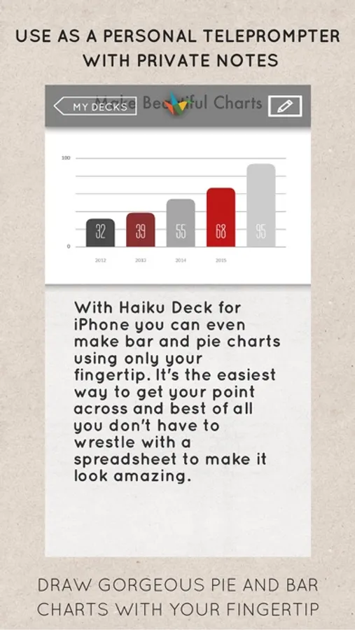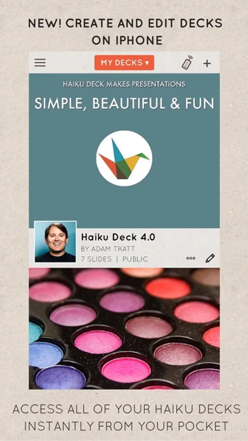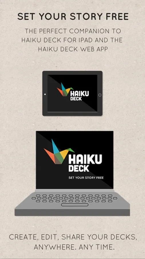 * Create and edit your Haiku Decks on the Web, iPhone, or iPad