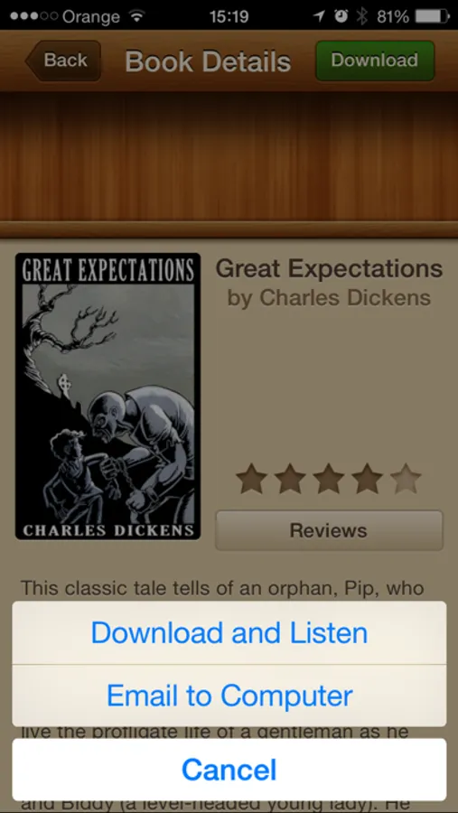 * Magic Downloading. Find something you like. Tap 'Download and Listen'. We'll immediately download the first chapter, and a few chapters ahead. Finish a chapter? We'll download another. We're sure to always download three chapters ahead- that way you'll never be without something to listen to.