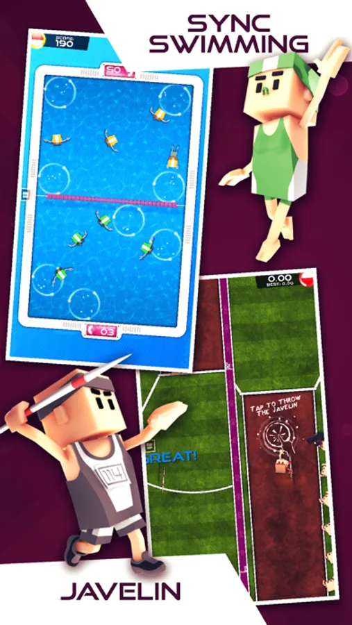 • Nine sports to play; Boxing, Running, Volleyball, Handball, Kayaking, Hammer Throw, Javelin, Swimming and Synchronized Swimming.