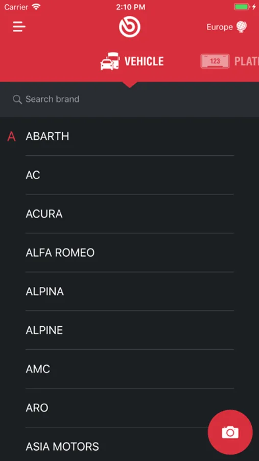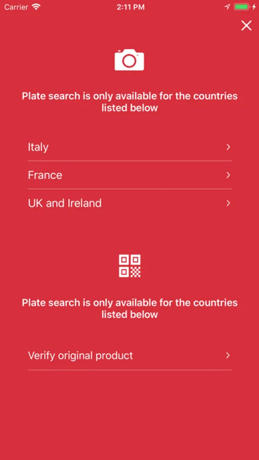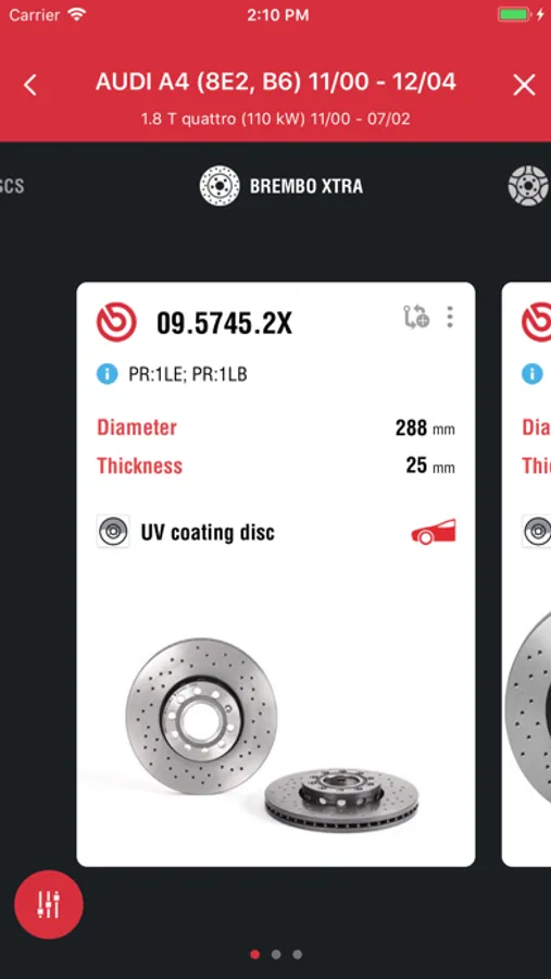• Search by plate (only Italy, France, UK and Ireland). News: from today it is only necessary to scan the license plate and the APP will give you the Brembo part numbers available