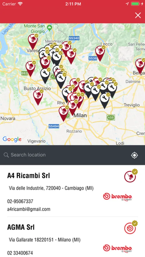 • Locate the Brembo dealer nearest you, to find out about prices and product availability