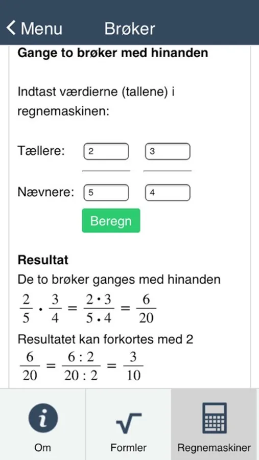 Løs ligninger, regn med brøker eller dividér, gang, læg sammen eller træk fra.