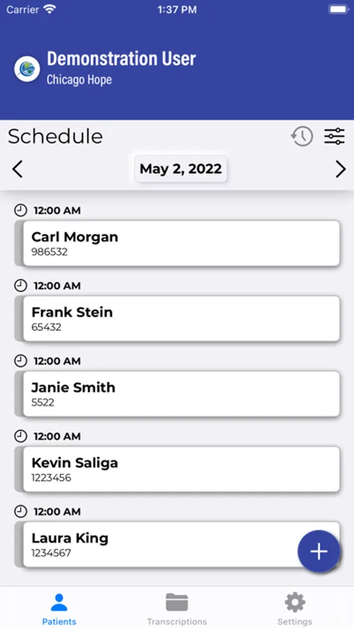 After configuration, the provider's patient schedule is automatically downloaded to the iPhone. The provider can select a patient and start dictating. The final dictation uploads in the background and goes to a medical transcriptionist or speech understanding engine to produce a typed report.