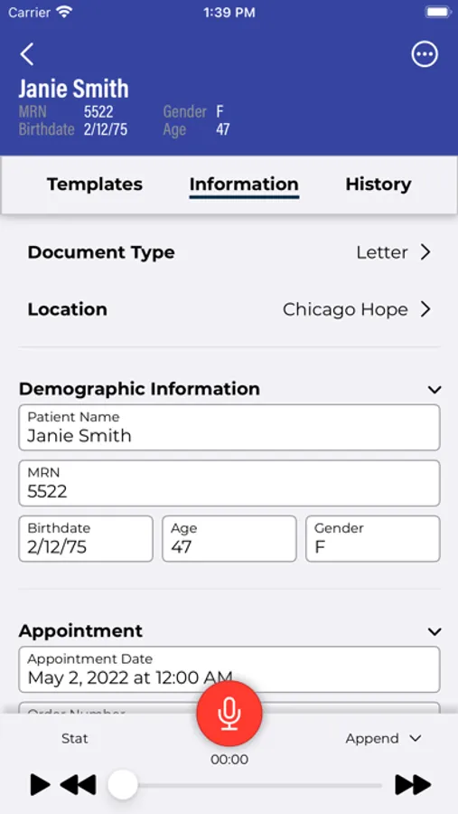 While dictating, the provider can review templates and previous notes for the patient. If the provider uses multiple devices, the patient schedule is synchronized to show the provider what dictations still need to be completed.
