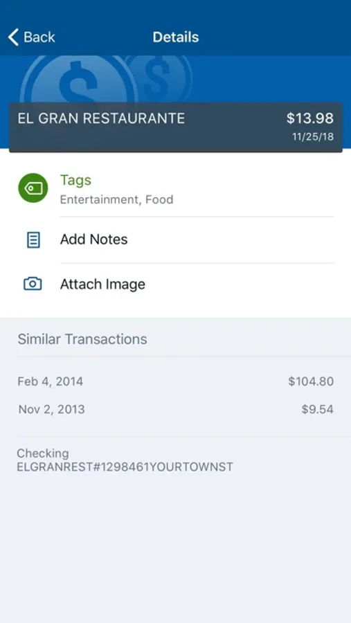 Add Tags, Notes, Images & Geo-Information: By enhancing transactions with custom tags, notes or photos of a receipt or check, you have the ability to stay organized and find exactly what you’re looking for when searching through your finances.