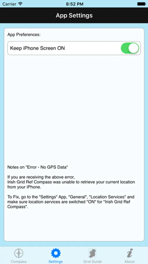 This app requires Location Services to be enabled in your iPhone, and you must grant permission to the app to use these.