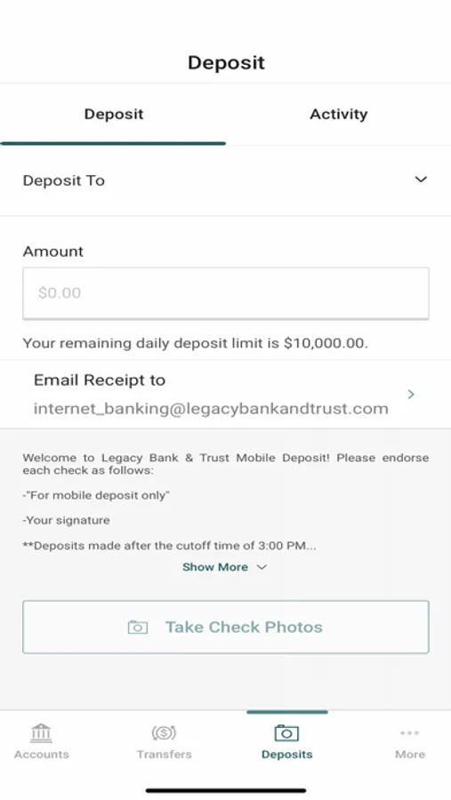 Start banking wherever you are with Legacy Bank and Trust Company Mobile Banking app. Available to all Legacy Bank and Trust Company online banking customers.