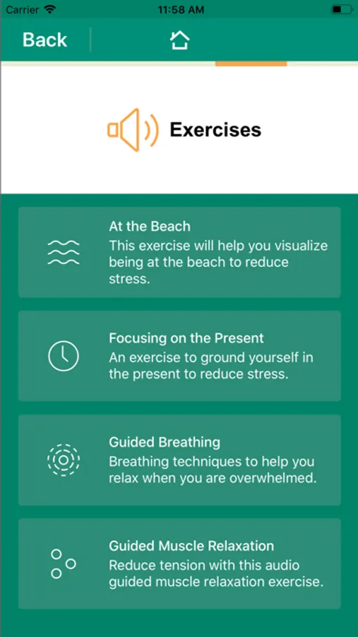 EXERCISE: Use these guided, easy-to-follow techniques to help reduce anxiety and stress that may result from sexual assault. The exercises can be used in private, marked as “favorites” and replayed as often as needed.