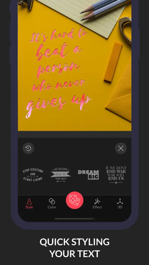 Threads - Poster & Quote Maker App is a powerful typography generator that magically turns your text into amazing typographic designs with zero design skills needed. This would normally take minutes or even hours if you were using Photoshop or a similar photo editor.