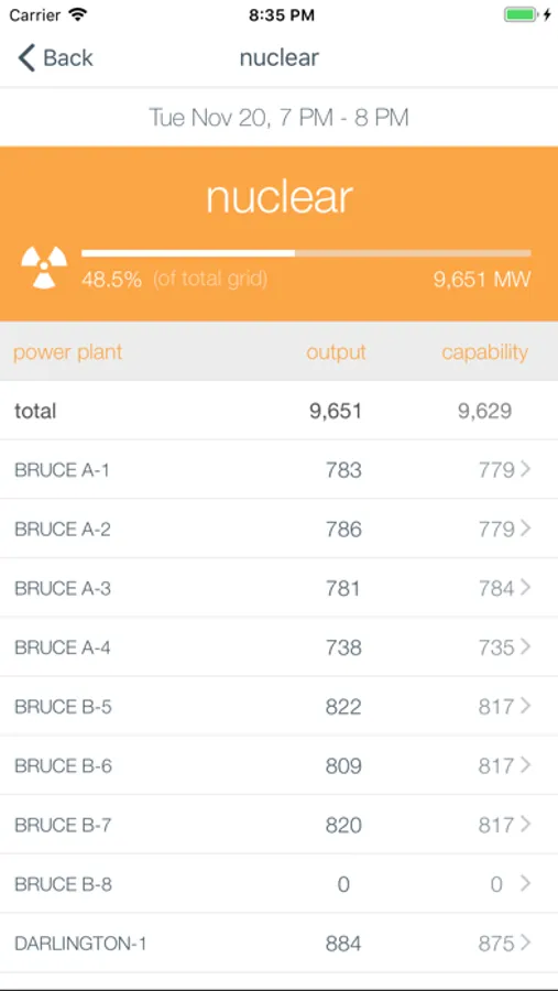 Gridwatch not only breaks down total generation by fuel type but also by individual power plant. Each plant's capability and actual contribution a listed for every hour. Want to know more about a specific plant? Location, owner/operator and a specific knowledge nugget is provided for each facility.