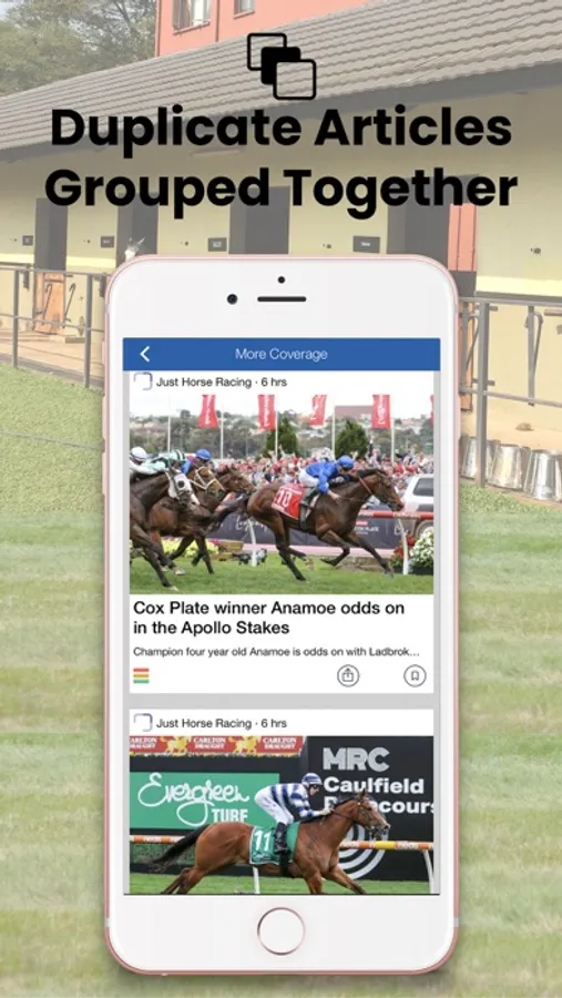 * Full Coverage - clean feed with no repeat stories. For each story see all the different sources that covered it with a simple tap + live and updated race results inside the app AND videos curated from leading horse racing video channels.
