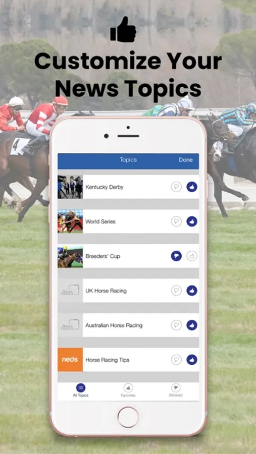 * Push notifications for your favorite topics and/or prominent horse racing events