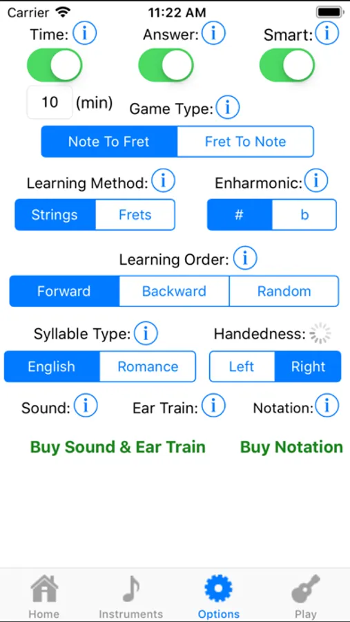 • Configure whether the answer is shown, sound is heard, and/or notation is shown when you want to challenge yourself further.