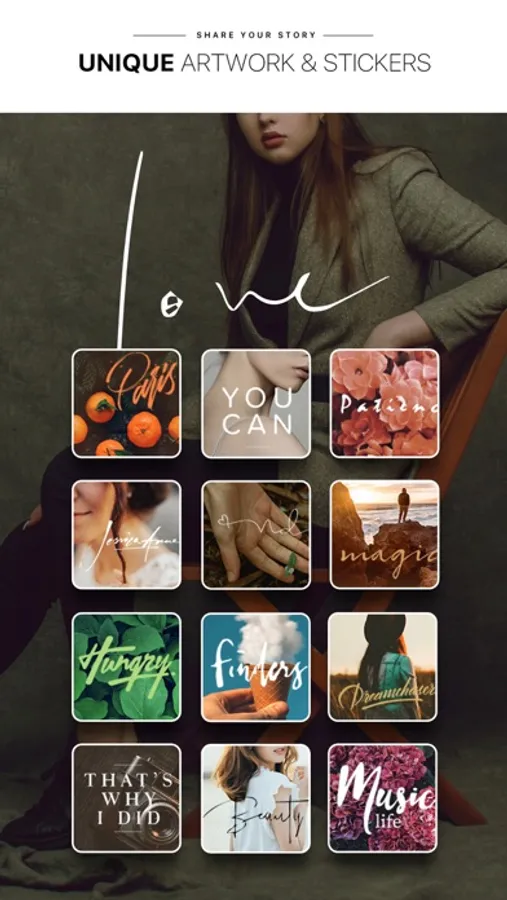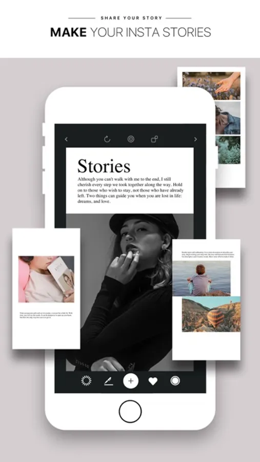 If you want to make quick collages or add nice fonts to your Insta Stories, Fashion Story is the easiest and fastest one you can use, Fashion Story comes with a bunch of Insta Story templates. You can upload your own photos, add icons, stickers and text, Start now, share in minutes.