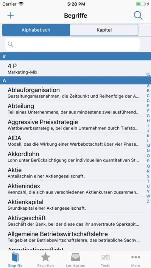 Diese App basiert auf dem Lehrmittel «Betriebswirtschaftslehre» von Vera Friedli, Renato C. Müller Vasquez Callo und Rahel Balmer-Zahnd aus dem hep Verlag. Sie enthält alle Begriffsdefinitionen des Glossars aus dem Buch - alphabetisch oder nach den Kapiteln geordnet sowie ergänzende Links ins Internet.