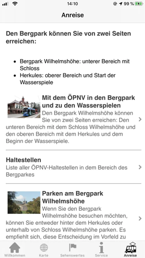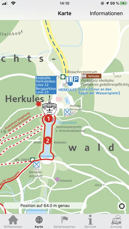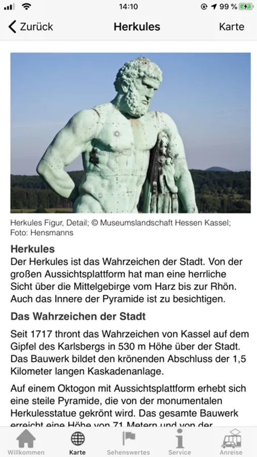 Der Bergpark Wilhelmshöhe ist weltweit einmalig und wurde am 23. Juni 2013 mit seinen Wasserkünsten in die UNESCO-Welterbeliste aufgenommen. Er ist der größte Bergpark Europas und berühmt für seine vielen Highlights: Herkules, Löwenburg, Schloss Wilhelmshöhe oder Wasserspiele, diese App weist Ihnen den Weg und zeigt darüber hinaus auch die weniger bekannten Sehenswürdigkeiten im Park. Viele Bildmotive untermalen diese Infos eindrucksvoll.