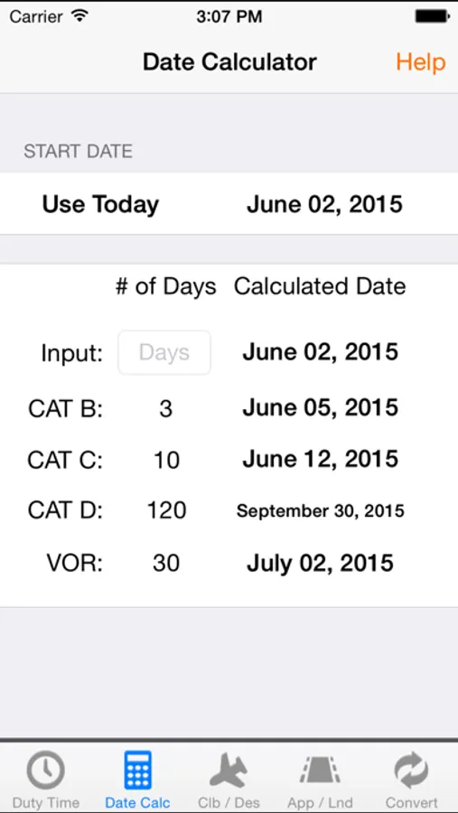 The wait is over! The Pilot Aviation Duty and Performance Calculator Application offers all these calculations wrapped up in a single application. It also includes a Date Calculator that makes it easy to compute the common Minimum Equipment List (MEL) due dates or even your 30 day VOR Check. You no longer need to fill your iPad/iPhone with countless Apps to get the aviation information you desire, everything you need is included in this one simple to use App.